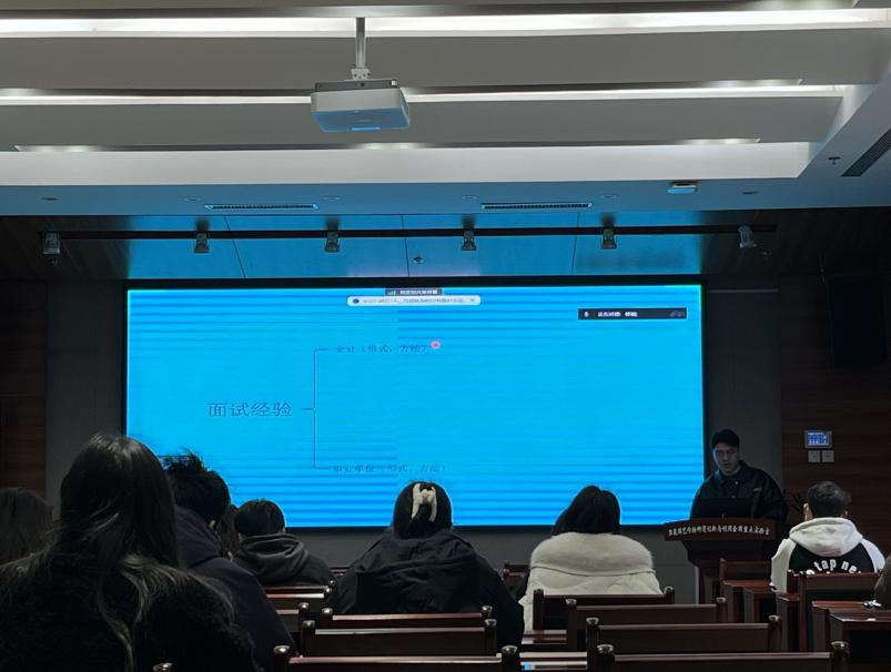 本次求职经验分享会邀请了考取云南选调的赵文超同学以及顺利签约企业的韩福同学,他们通过分享自己的求职经历、面试技巧以及学习心得,为同学们提供了宝贵的经验和建议。其中,赵文超同学分享了自己的备考历程,从笔试准备时间到笔试内容学习,事无巨细的给同学们无私分享。韩福同学从如何撰写简历、信息获取渠道到面试技巧,都进行了详细的分享。最后,辅导员孟悦老师为同学们解读了当前求职形势,提出了实用的求职建议。