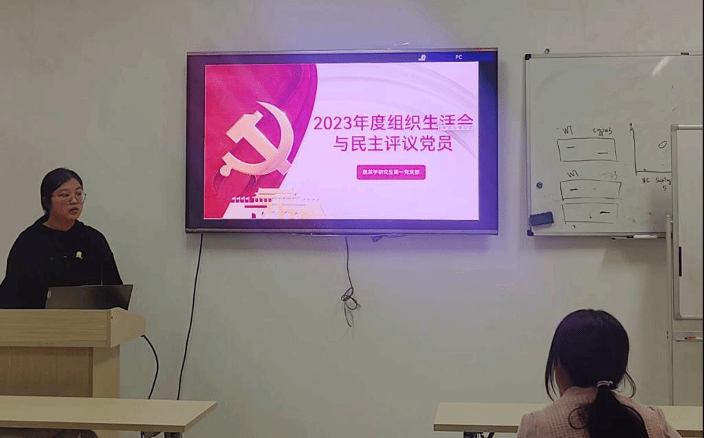 最后,党支书张梦晴代表党支部汇报2023年全部工作。党支部严格推进党员发展工作,致力于打造成为勤学习、会思考、敢发言的优秀支部;支部各位同志实事求是开展批评与自我批评,深刻认识到自己的不足,期待新的一年大家与支部一起砥砺前行。