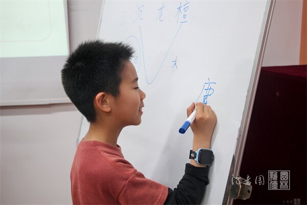 在介绍香文化前,项之彦向小朋友们解释了非遗的概念,并以雕刻工艺、瓷器制作工艺为例与物质文化遗产进行区分。随后,项之彦介绍了“香”字的起源与发展,形象生动地说明了“香”的概念是如何演变成如今被普遍认同的“香指代一切好闻的、令人愉悦的气味”。