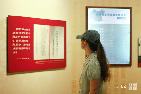 介绍完毕,同学们登上二楼的武昌中央农民运动讲习所历史陈列馆参观。武昌中央农民运动讲习所是第一次国共合作时期,由国共两党共同创办的一所培养农民运动干部的学校。主持农讲所全面工作的毛泽东怀着对中国农民运动的极大热忧,同邓演达、瞿秋白、彭湃、李立三、恽代英等共产党人和国民党左派人士共同努力,指导来自全国17个省区的学生学习革命理论和农运常识,进行军事训练,参加社会斗争,培养了一批优秀的农运骨干。大革命失败后,奔赴全国山乡水泽的农讲所师生,怀着坚定的理想信念,汇入武装反抗国民党反动派的斗争洪流,成为中国共产党开展土地革命和创建农村革命根据地的中坚力量,为中国革命的胜利贡献出自己的青春与热血。