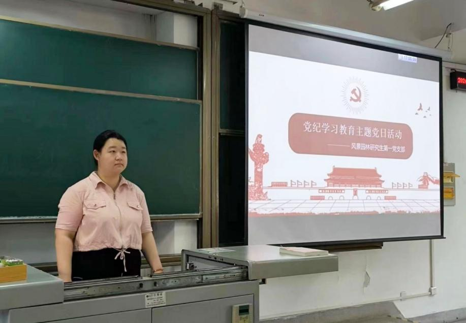 4月25日中午,风景园林研究生第一党支部景园楼309开展“党纪学习教育”主题党日活动,会议由党支部副书记夏琳同志主持。