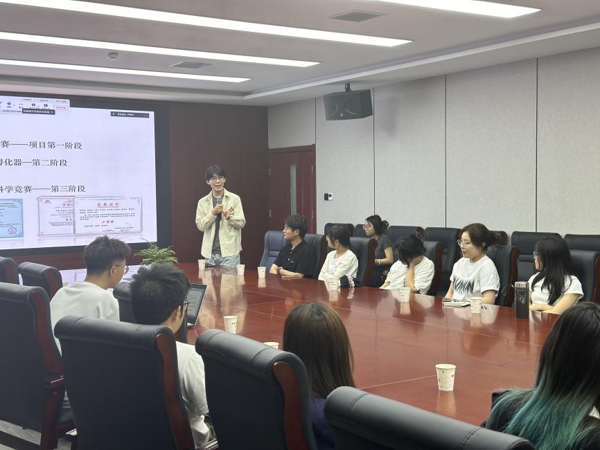 分享结束之后,活动进入互动交流环节,多位同学围绕两位分享人的汇报内容进行提问,其中伍明星同学对分享人李泽巍“新质生产力?先做PPT”这一内容印象深刻,提问如何做好PPT。李泽巍回答道:“关于PPT的制作,首先要美观,简洁大方,不必过于的追求精美,但要突出项目创新点以及能否带来商业化,要让老师一眼能看到项目的价值。”