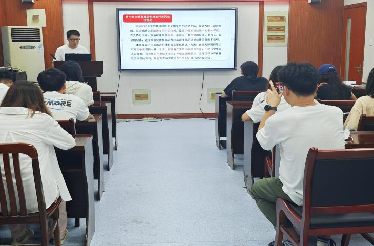 会议伊始,董思涵同志带领大家学习了《中国共产党纪律处分条例》第二编分则的部分内容,分别介绍了党对违反政治纪律、组织纪律、廉洁纪律的行为处分规定,并呼吁全体党员要遵守纪律,互相监督,及时发现并制止违规行为。