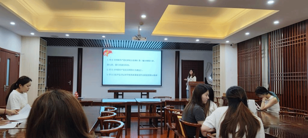 会议伊始,毕璐、吴盈讲解了《中国共产党纪律处分条例》第二编分则第六章、第七章、第八章部分内容,包括违反政治、组织、廉洁纪律的行为,并告诫全体党员应严格遵循党的规章制度