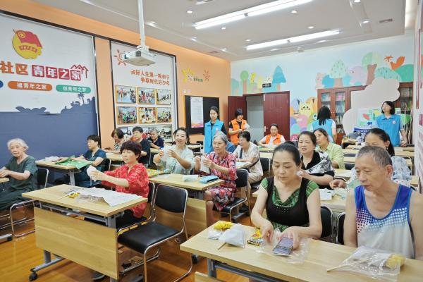生动的讲解让老人们了解了艾草的神奇功效,还激发了他们亲手制作艾草锤的兴趣。在志愿者们的帮助和示范下,老人们认真细致地制作了自己的艾草锤,并在制作过程中进行了个性化的创作。志愿者们还积极与老人们交流,分享了不同地区端午挂艾草的习俗,增进了彼此的了解。