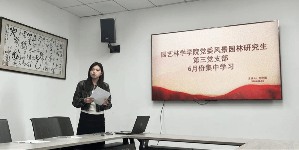 6月14日,风景园林研究生第三党支部在景园楼212会议室以“支书讲党课”的形式组织开展了六月党日活动,党支部全体党员及积极分子参加学习。