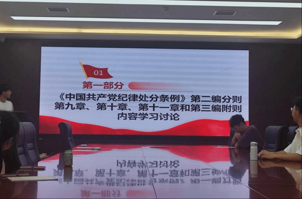 会议伊始,李兆龙同志带领全体党员共同学习了《中国共产党纪律处分条例》第二编分则第九章、第十章、第十一章和第三编附则内容、习近平总书记在中共中央政治局第十四次集体学习时的重要讲话精神、以及关于进一步加强实验室管理规范的要求。他强调,全体党员在生活中必须明确个人行为规范,坚决不能触碰纪律红线。