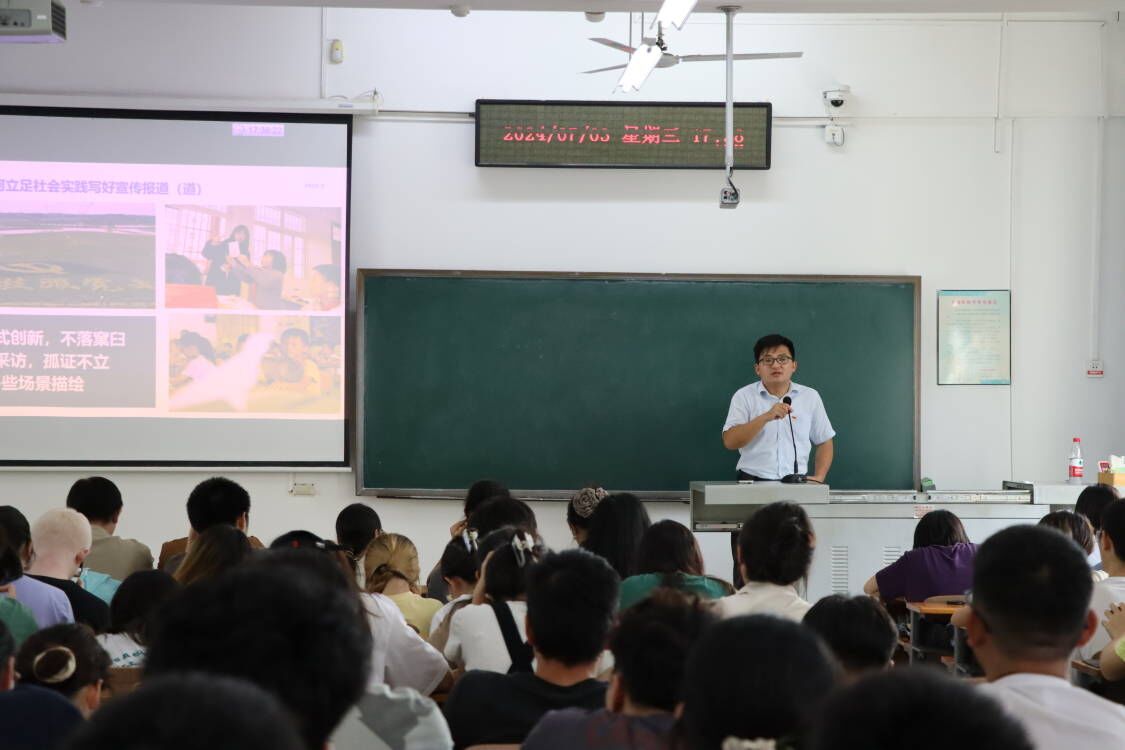 【核心提示】7月3日,八八看球 邀请校党委宣传部徐行老师于三教A203开展2022级暑期社会实践新闻宣传工作培训会。辅导员郭艺佳主持会议,各社会实践团队负责人、新闻宣传成员、八八看球 新闻与宣传系统学生干部参会学习。