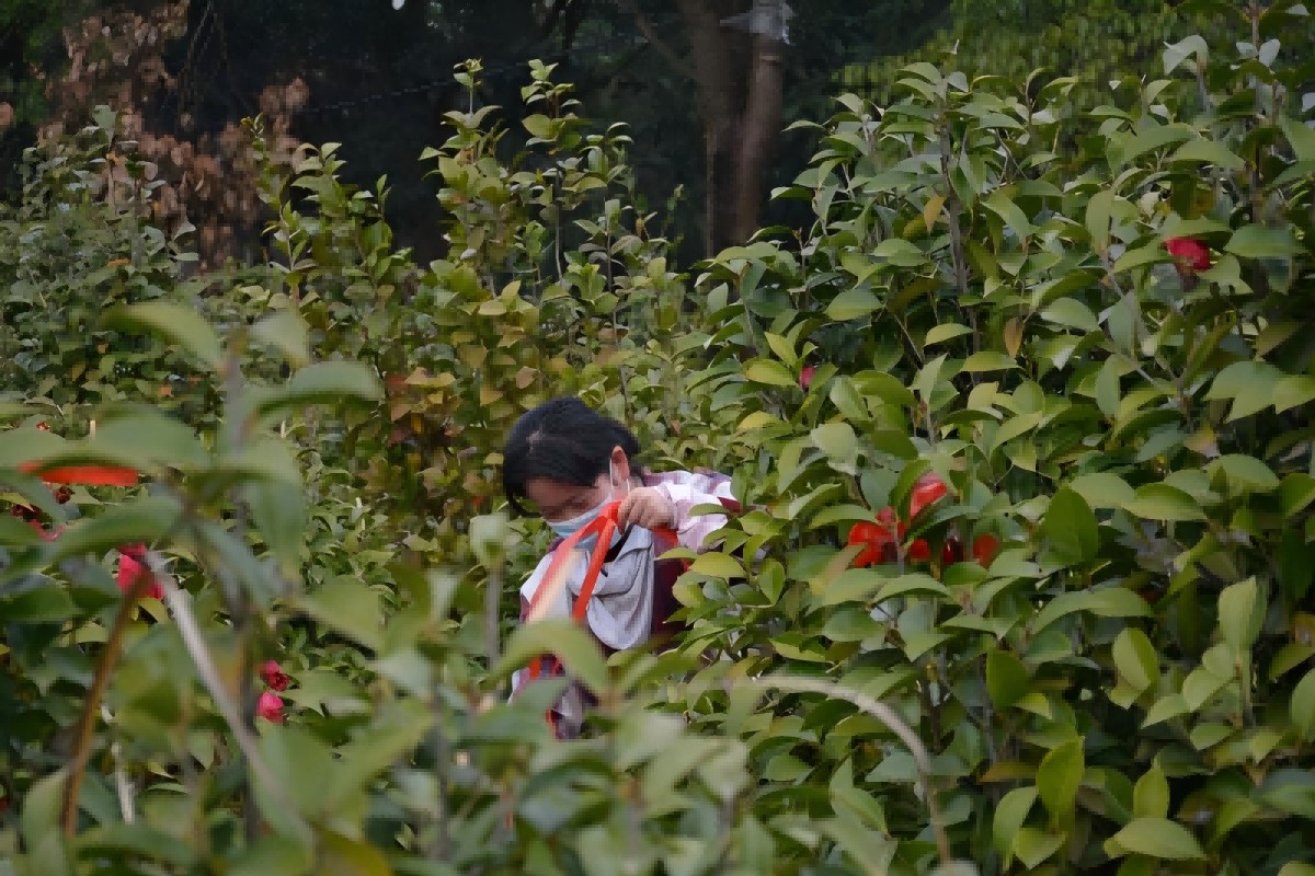 在实地调研过程中,社会实践小组对红花油茶种植基地进行了全面且细致的考察。团队成员带着专业设备,深入每一片种植区,对红花油茶的各项生长指进行了详细记录和科学测量。实践小组成员详细记录了红花油茶的树高、冠幅、地径等指标,以准确掌握树体的生长状况。