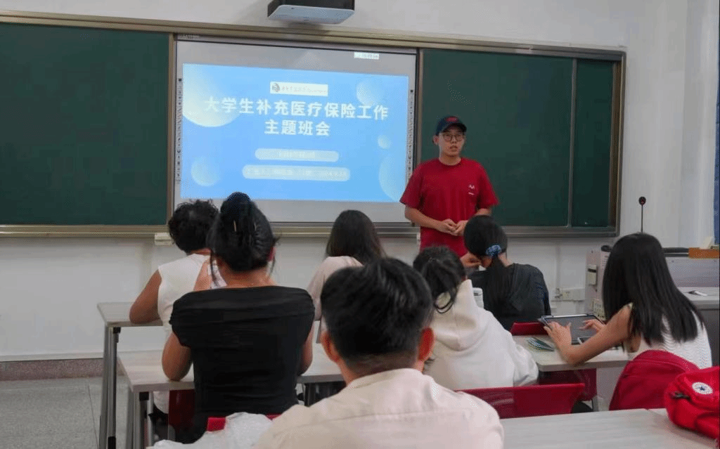 最后,班会进行了补充医保政策的宣传。班长杨龙海详细介绍了学校为学生提供的补充医疗保险政策,包括保障范围、报销流程以及注意事项等。