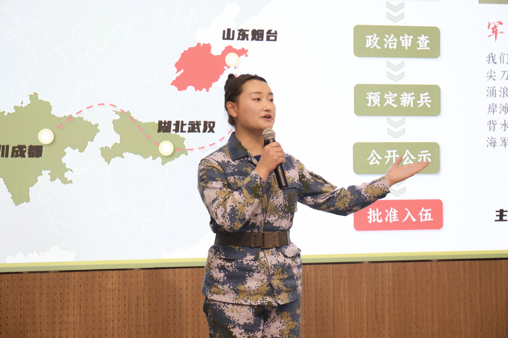 在海陆军战队训练的两年里,简雪燕同样严格要求自己。训练场上她不遗余力、顽强拼搏,障碍越野、弹药输送、牵引横渡、武装奔袭……在各种高难度训练中,她始终斗志昂扬,用汗水彰显军人血性,用激情闪耀军人光辉。退役复学后,简雪燕对这段军旅生活念念不忘。从大学生到军人再到大学生,身份的一次次转变让简雪燕变得更加成熟与自信、学会坚持与担当。“军旅生活让我收获了坚韧不拔的意志和团队合作精神,这些品质对我的学习和生活产生了积极影响,让我在面对困难时更加勇敢、在团队合作中更加融洽。”而自始至终未曾改变的,是她对军队的敬畏与向往、对祖国的热爱与赤忱。