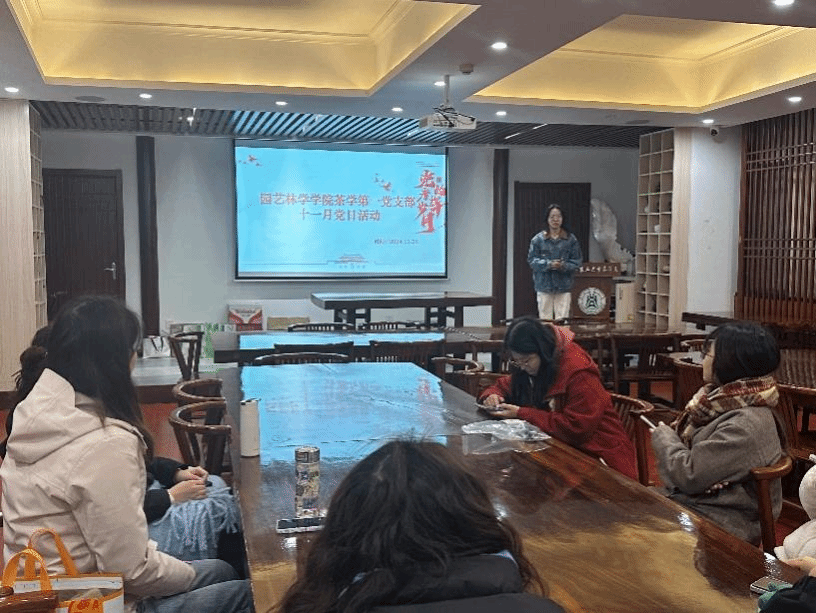 11月26日,茶学研究生第一党支部于园林北楼226室召开十一月份党日活动及预备党员转正大会。会议伊始,支书高天乐介绍了本次会议议程,并强调支委做好会议记录。
