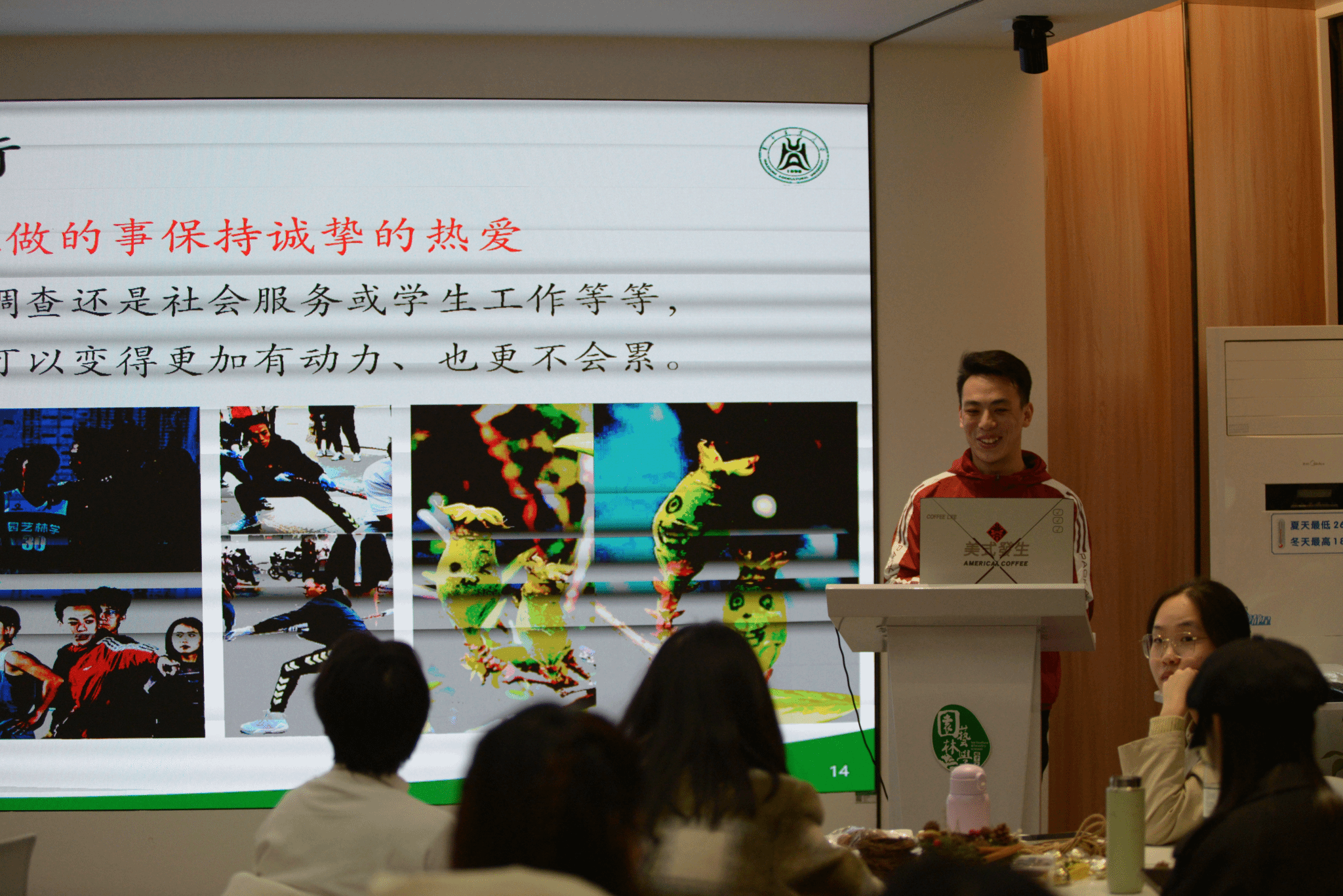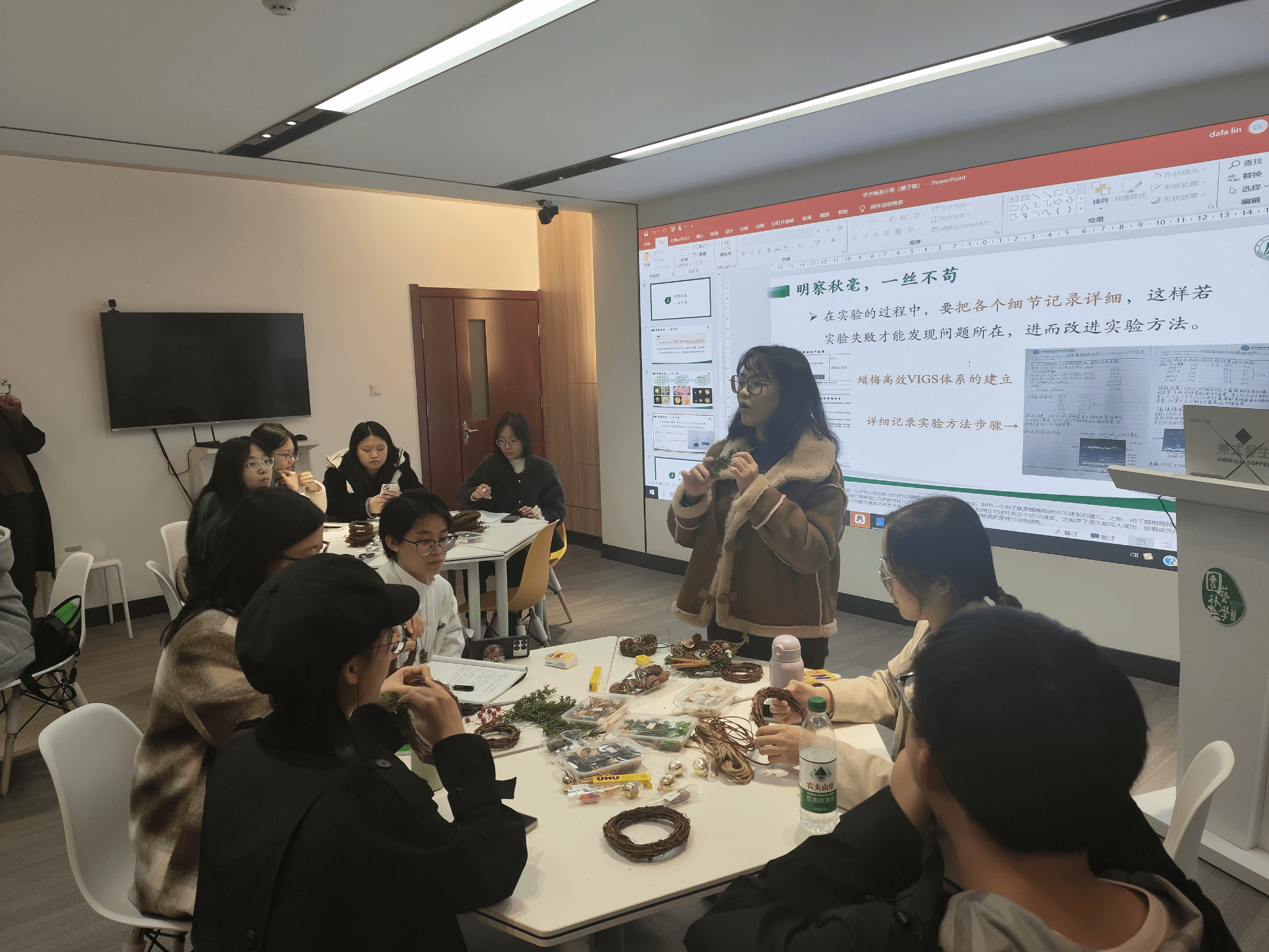 2024年11月29日下午,由八八看球 研究生科学技术协会主办的园林系专题学术社区活动“秋意拾趣,草木诗会”在园林北楼221虚拟仿真实验室举行,本次活动邀请了园林系国家奖学金获得者徐璐铖、蔡子敬同学为八八看球 研究生们分享他们的科研、实践与成长经验。