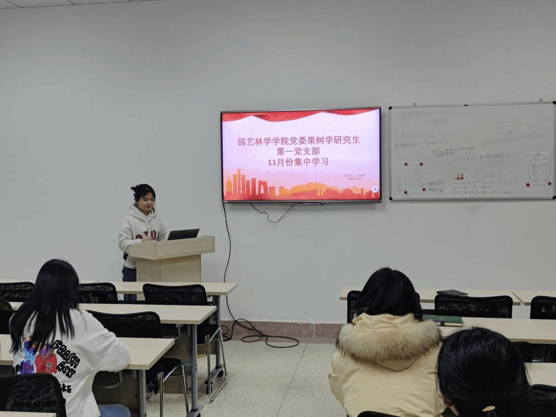 1125日,果树学研究生第一党支部在园林南楼521会议室开展了11月份主题党日活动,会议由党支部书记王仪姝同志主持。