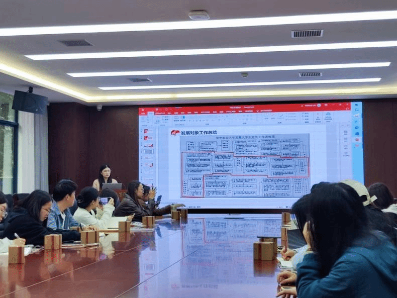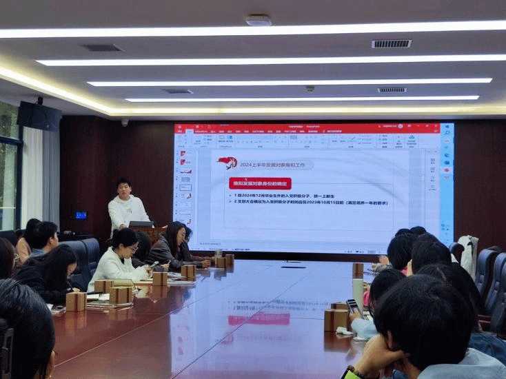 会议伊始,赖美慧介绍发展党员的工作流程,以及如何开展2024上半年发展对象推拟工作,强调了几个重要环节:1.拟发展对象身份的确定,2.推拟流程及时间节点,3.发展对象培养流程。对如何开展两项座谈会提出要求,以及对相关材料的填写做出指导。