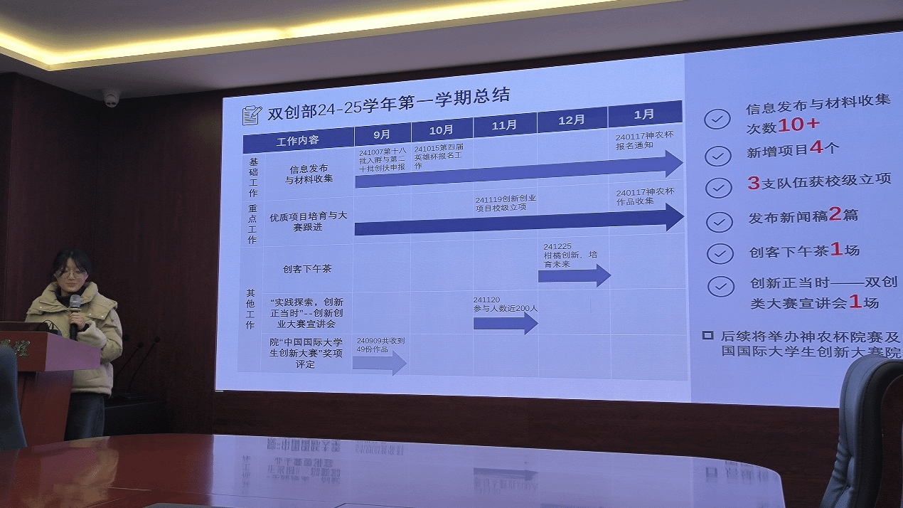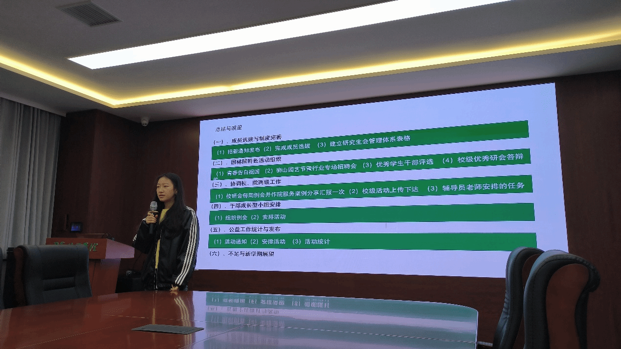 会议的后半段,八八看球 研究生会各部门依次进行了上学期工作总结。各部门通过一页PPT的形式,清晰地展示了上学期的工作成果与经验教训,简洁明了地呈现了工作亮点与不足之处。其中,理研部总结了“青春告白祖国”系列活动、“永远跟党走,奋进新征程”活动的开展情况,以及在调研推进、校研会活动收官、联培生专项工作等方面的成绩与不足。