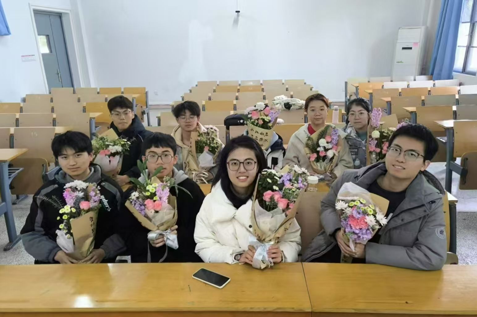 上午十一点,所有的插花作品包装完成,插花活动顺利结束,众人捧着自己的作品合影留念。施宇涵表示:“这次活动的成功不仅仰赖所有参加同学的积极配合,与活动前的准备更是密不可分:向老师请教插花知识、花卉及包装材料的采买、提前一夜为月季剪刺……感谢在此次活动中不遗余力地提供帮助的朋友们,很开心能带领大家亲身体验插花。”