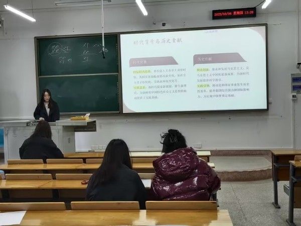 在“党的建设与自我革命”专题中,支部回顾了全面从严治党的重要论述。书记董晓玲同志指出了支部上学期工作成效与不足,并提出新学期工作计划:围绕“党建+专业”品牌建设,深化主题党日实践和志愿服务,推动党建与学业、科研、社会服务深度融合。