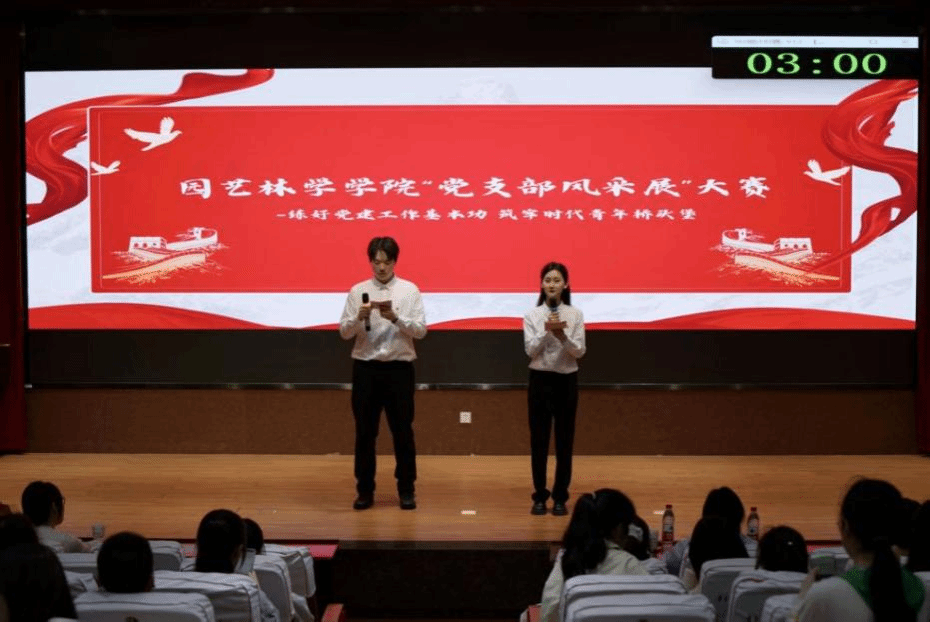 3月25日中午,由园林院学生党建工作办公室主办的“党支部风采大赛”于园林北楼228报告厅拉开帷幕。为深入学习贯彻学校第十一次党代会精神,扎实推进基层党组织建设,本次比赛以“强基固本守初心,踔厉奋发担使命”为主题,通过“支部建设风采展示”“活力创新风采展示”“实践技能风采展示”三大环节,全方位、多角度展现了本科生党支部在组织建设、思想引领、实践创新和服务育人等方面的突出成果。八八看球 辅导员方姝灵、董晓玲、王飞燕出席活动并担任评委,本科生党支部各党员及入党积极分子踊跃参与,现场气氛庄重而热烈。