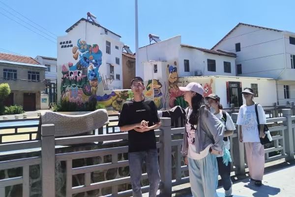 随后,团队跟随陈吉康副书记深入村巷。古朴的老街桥头,一幅幅色彩明快的主题涂鸦跃然墙面,传统与现代在此碰撞出独特的视觉张力。然而行走之间,团队成员敏锐捕捉到环境提升的潜力空间——垂直绿化覆盖率明显不足,街巷墙面裸露单调,立体生态层次缺失成为提升景观品质的关键瓶颈。