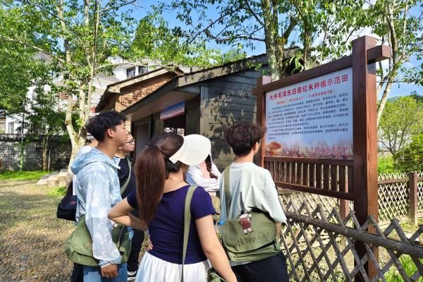 实践团成员怀着崇敬之心,踏入这片充满历史厚重感的土地,参观着旧居。在读书石前,往昔岁月似被唤醒,毛泽东同志即便面临风吹雨打,仍专注安宁的翻书声,仿若从石上那镌刻着峥嵘过往的痕迹间翻涌而出。而在大井毛泽东旧居的红米种植示范田间,“指导单位:华中农业大学” 的字样格外醒目,那一抹亮色,恰似红色基因跨越时空,正代代传承,熠熠生辉 。