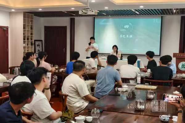在充分倾听学子分享后,主持人系统讲解茶叶分类:从绿茶、红茶、青茶(乌龙茶)、黄茶、黑茶、白茶六大基本茶类,到花茶、紧压茶等再加工茶类,结合制作工艺、外观特征与风味口感,逐一介绍每类茶叶的独特之处 —— 如绿茶 “清汤绿叶、鲜爽回甘”,红茶“红汤红叶、醇厚香甜”,青茶“绿叶红镶边、香气馥郁”。同时,还重点解读“高山云雾出好茶”的俗语,结合海拔、气候、土壤等地理条件,解释高山茶因昼夜温差大、湿度适宜、病虫害少,而具备香气更浓、滋味更醇的优良品质,让学子们对茶叶品质的影响因素有了深入认知。