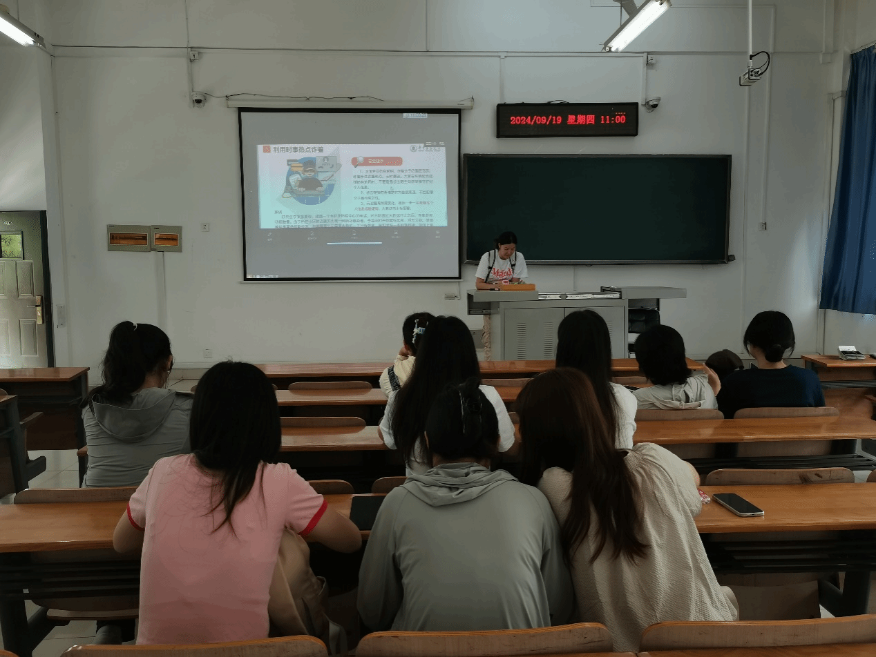 首先梁雯带领大家学习关于防诈骗的相关安全知识,介绍高校易发、高发电信网络诈骗的案例,强调电信网络诈骗的危害性,并科普了增强自己反诈骗意识的技巧。随后,班长号召大家在日常生活中要提高警惕,认真学习诈骗案例,谨防遭受钱财损失,一旦发现上当受骗第一时间与辅导员联系,以便于学校老师第一时间知晓并介入帮助。