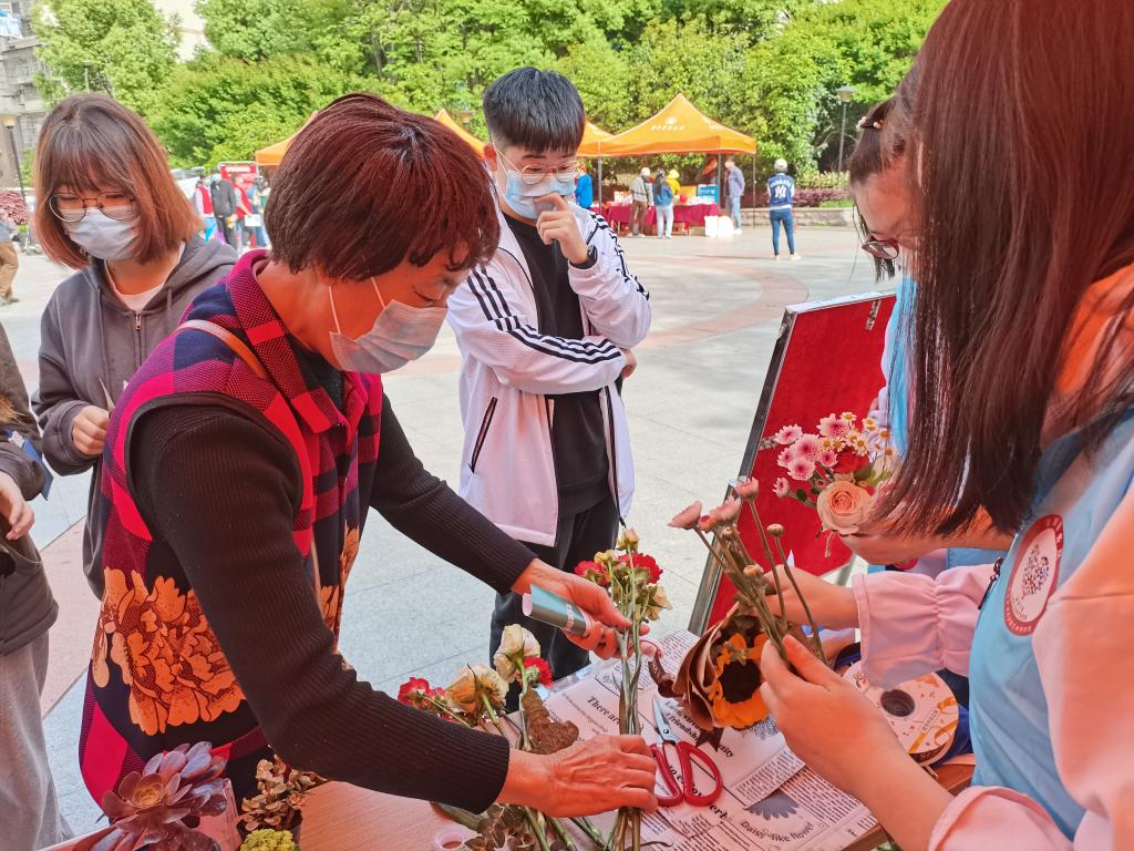 【核心提示】4月17日上午,华中农业大学张瑜服务队受邀参加洪山社会组织嘉年华·公益市集,开展了“植物养护知识科普”和“手捧花制作”志愿活动。
