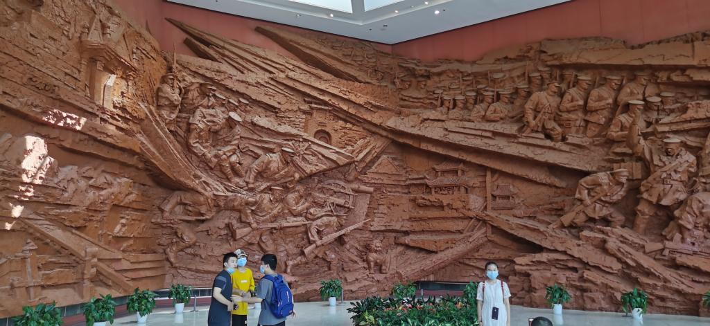 实践团成员参观壁雕共和之基(黄子秋 摄)