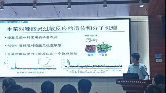 会上,安光辉介绍了LsSAW1调控生菜结球和叶背腹性的机理。廖晓利阐述了MiR15-SPL-MIR172-AP2在杨树季节性生长停止和幼年向成年转变的分子调控机制以及乙酰化组学在杨树休眠芽解除中的作用。刘子昂说明了甜橙可甜可酸的理由是甜橙的体细胞变异影响它的果实酸度。尚乐乐介绍了番茄自花授粉发生的形态基础。左昊讲述了青藏高原的特殊果树资源——光核桃的起源、进化以及遗传适应性的研究。皮梦婷证实了GT-1转录因子SIMPLE LEAF通过生长素途径调控森林草莓的复叶发育。宋杰汇报了枳抗旱基因的挖掘以及相关的分子机制研究。