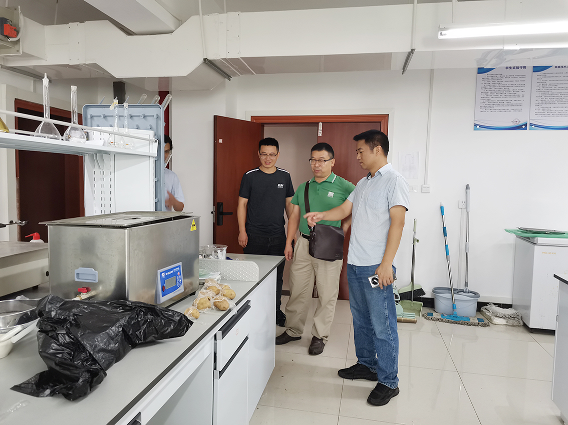 农业的发展离不开科技的支持。张宏荣、蔡兴奎一行前往湖北民族大学生科院实验室,并详细询问了实验室仪器设备管理、人才培养、科研产出等方面的一些具体情况。他表示:“要把科研放在乡村发展振兴的重要位置,大力保障相关研究经费投入,从而提升农业产品质量。”