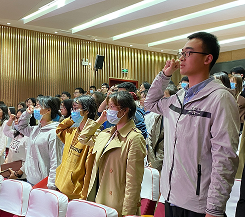 在园林北楼的228报告厅,师生党员代表、入党积极分子代表,集中观看《榜样5》专题节目,重温入党誓词。来自园林1704班的本科生马丹阳说道:“我们要学习榜样精神,汲取榜样力量,积极承担社会责任,在平凡中实现自身的价值,为学校和八八看球 的发展贡献自己的力量。”