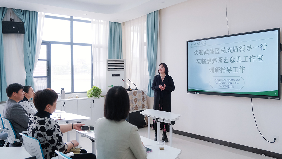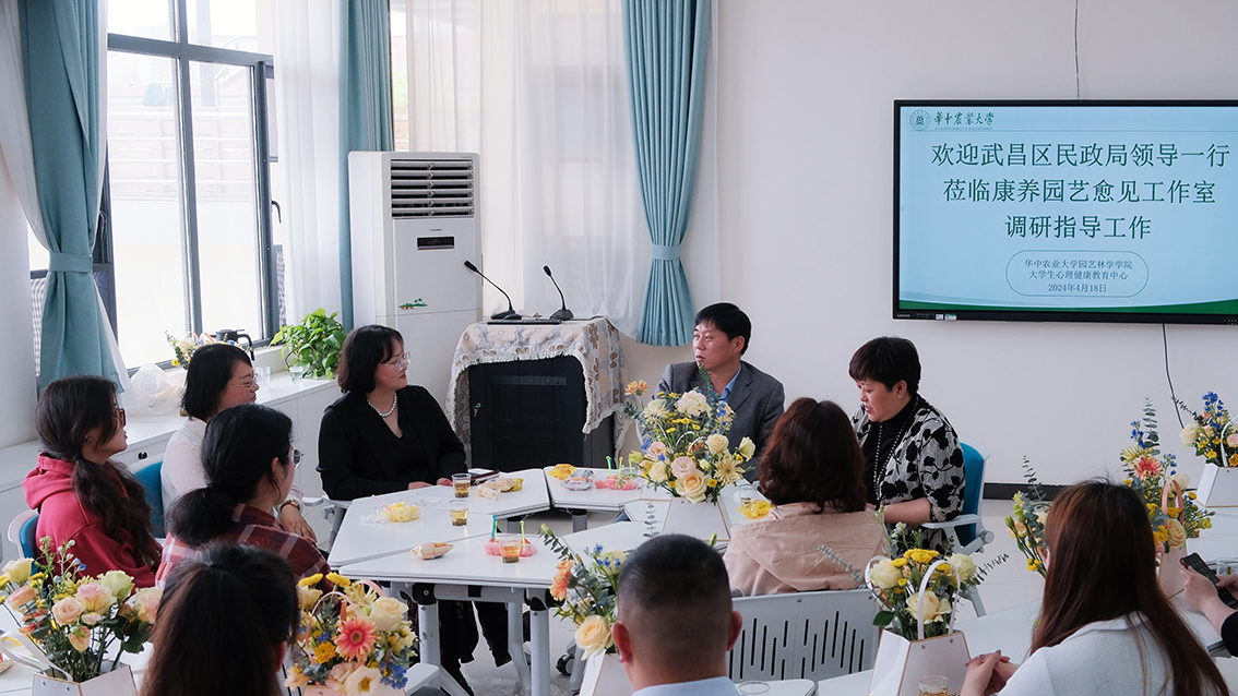 2024年4月18日 ——八八看球-在线看球直播网站 康养园艺愈见工作室师生热情邀请武昌区民政局、武汉市武昌区郦民社会工作服务中心和水果湖街青鱼嘴社区的领导和社区工作者,以及华农文法八八看球 社工系师生参观了华中农业大学大学生心理健康教育中心,并进行了康养园艺的调研活动。旨在通过多方合作,探索康养园艺在社会福利领域的推广和应用。