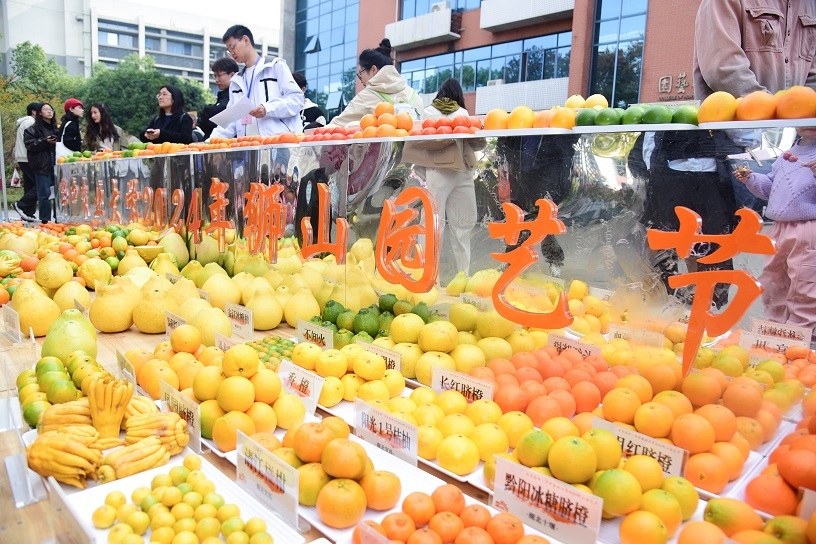 ▲橙黄橘绿(图为来自全国各地近150个柑橘品种展示)(学通社记者 梁翠莹 摄)