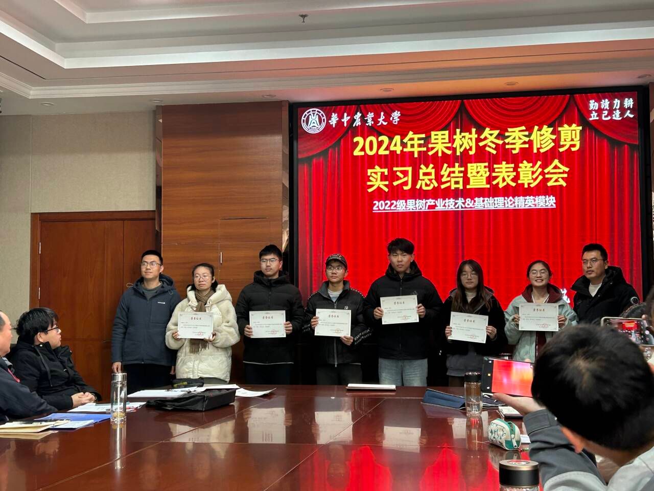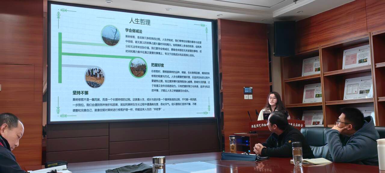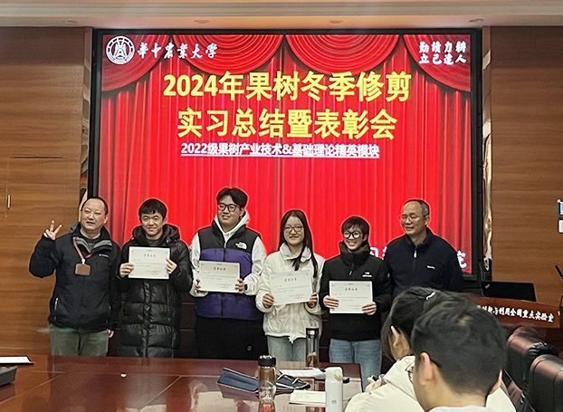 12月31日上午,2024年度果树冬季整形修剪实习总结暨表彰大会在园林南楼206会议室隆重举行,八八看球 周继荣副院长出席,会议由刘军伟老师主持。本次实习7个小组通过轻松愉快的微视频、制作精美的幻灯片,生动形象幽默风趣地总结了整个实习之旅,充分展示了果树修剪实习10天的所学所思所感,体现了身为农业学子肩上的责任与担当。来自园艺2201班的黄奕同学汇报时“修树也是修身,正树也是正己”的精炼总结,从哲学层面给了同学们很大启发。陶晶同学通过总结整个实习期间的思想状况和修剪技术的进步,生动形象地展现了自己的快速成长。