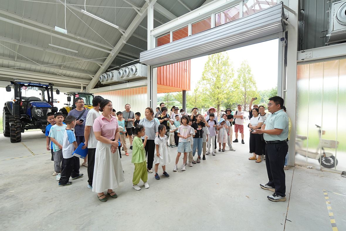 9月6日上午,来自武汉市20余所中小学的学生与家长一起走进华中农业大学数字果园机械库。橙、蓝、白相间的农业机械整齐排列,数字果园智能监测系统、智能播种机、智能巡检机器人、无人采摘机、植保无人机等智能系统和数字机械,引得孩子们惊喜连连。基地工作人员邹运乾老师模拟演示,同步讲解无人机械可以通过喷头将药液均匀洒向下方的果树时,一位家长趁机给孩子科普:“你看它的雾多细,这样农药能更好地黏在叶子上,既不会浪费,还能避免农药接触人体,这就是科技的力量。”