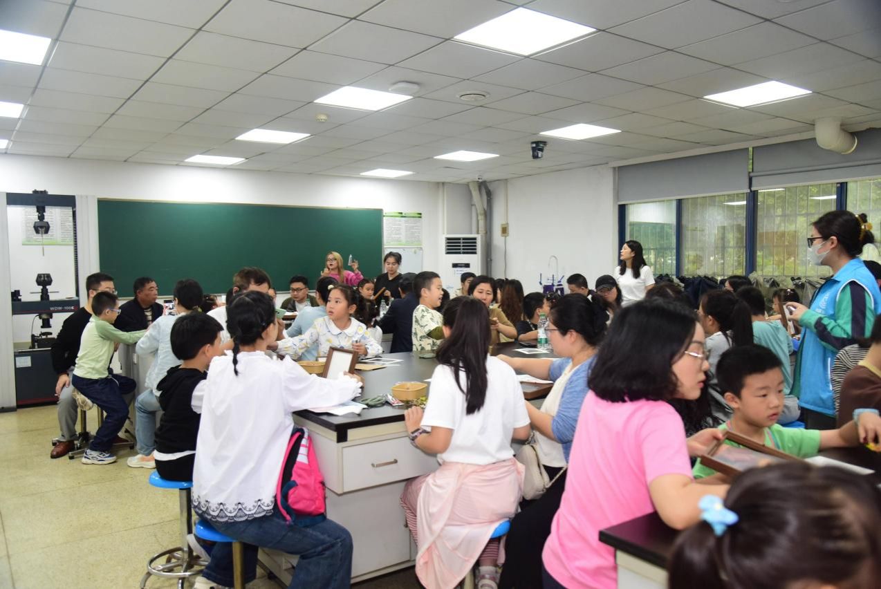 活动伊始,35组亲子家庭在工作人员的引导下走进华中农业大学博物馆。博物馆陈列着丰富的动植物标本、矿物样本及农耕文化遗产,宛如一部立体的“自然百科全书”。孩子们簇拥在展柜前,好奇地观察着栩栩如生的昆虫标本、形态各异的种子果实,以及珍贵的野生动物复原场景。通过观察植物分类、生长习性、生态作用,从学习的视角获得新的知识。博物馆讲解员通过生动有趣的解说,为亲子家庭揭示了自然界中动植物、矿物、生态等的生物多样性的奥秘与农业科技的发展历程。家长纷纷表示,这种沉浸式的参观体验不仅拓宽了孩子的视野,更激发了他们对自然科学的兴趣。